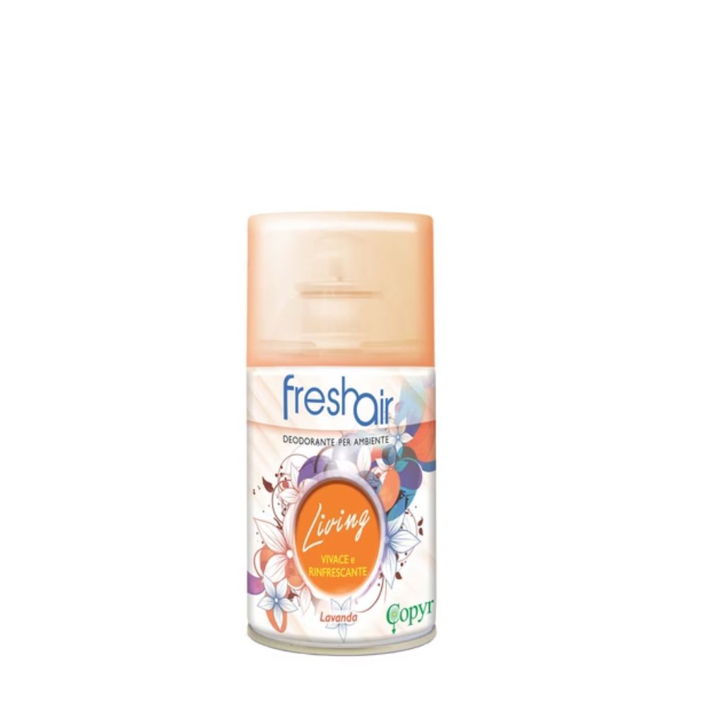 DESCRIZIONE MATERIALE: Il deodorante FRESH AIR LIVING LAVANDA è studiato per l’impiego ambienti interni, ad uso professionale. Grazie all’elevata concentrazione di essenze pregiate ed alla speciale valvola ad erogazione dosata, FRESH AIR LIVING deodora perfettamente ambienti fino a 100 m3. La bombola garantisce 3.000 erogazioni circa donando freschezza ai tuoi ambienti.